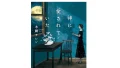 木目のテーブルに置かれた青と黒のアートカバーの書籍。奥には湯気の立つコーヒーカップと開かれたノート、万年筆、眼鏡がある。